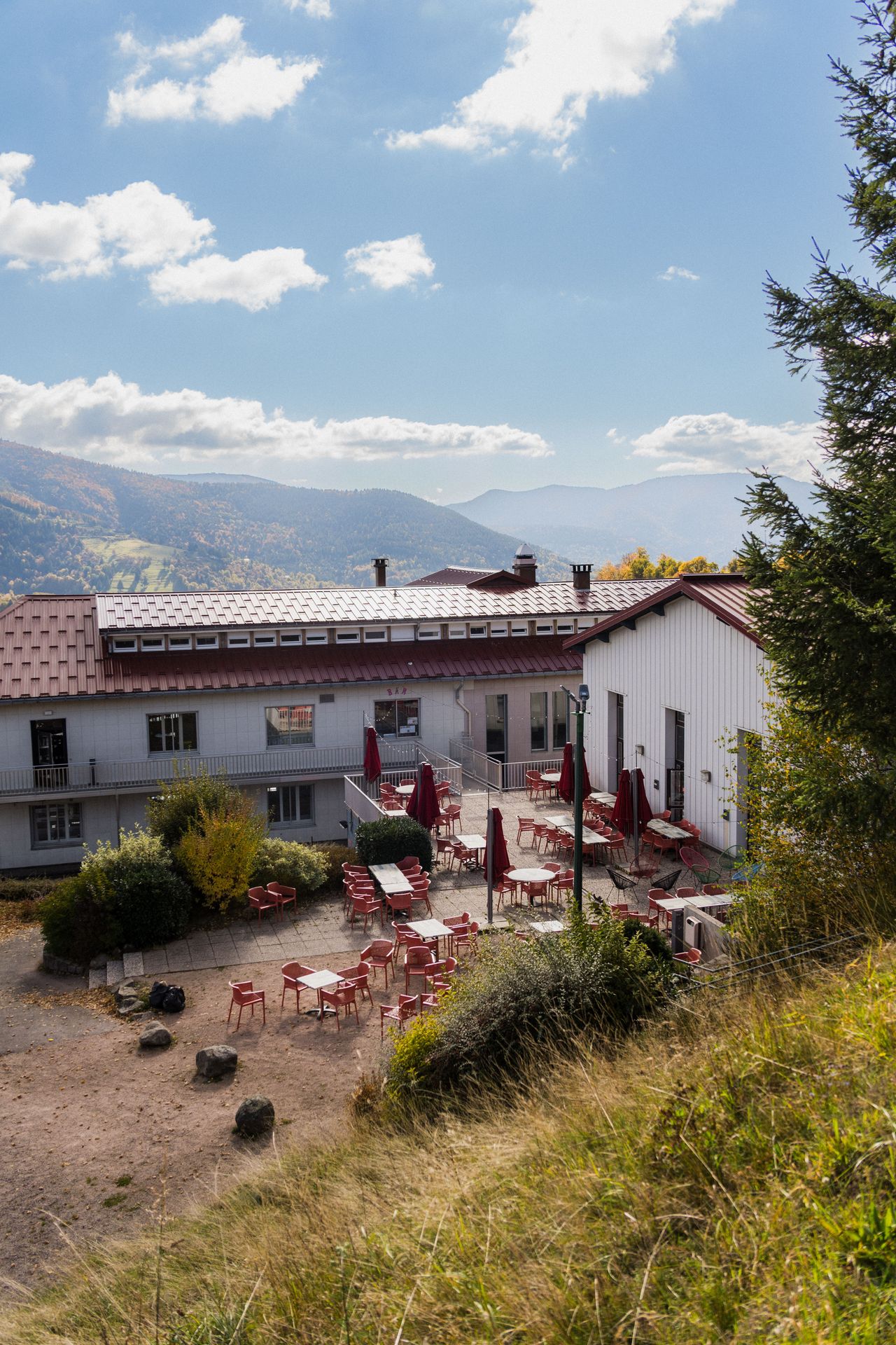 Le village BCF domine un panorama sensationnel ou l'on observe le soleil se coucher derrière le ballon d'Alsace. Apéro, détente et rencontre au programme !